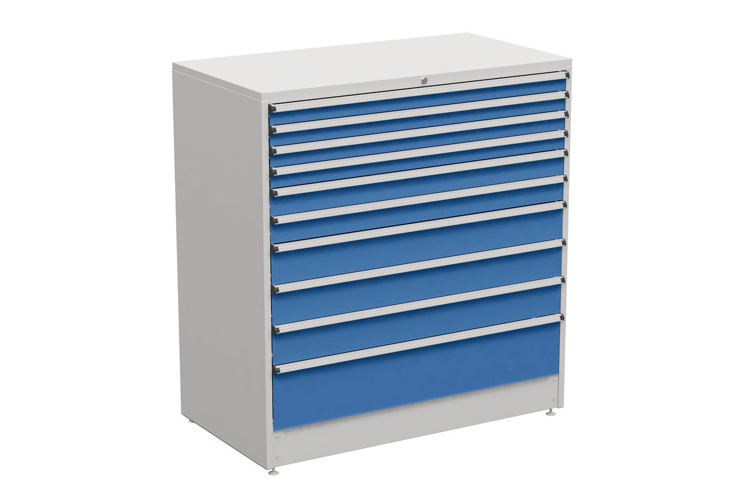 Atvilktņu augstums un skaits: 4 x 75 mm, 2 x 100 mm, 3 x 150 mm, 1 x 250 mm (kopā 10 atvilktnes)